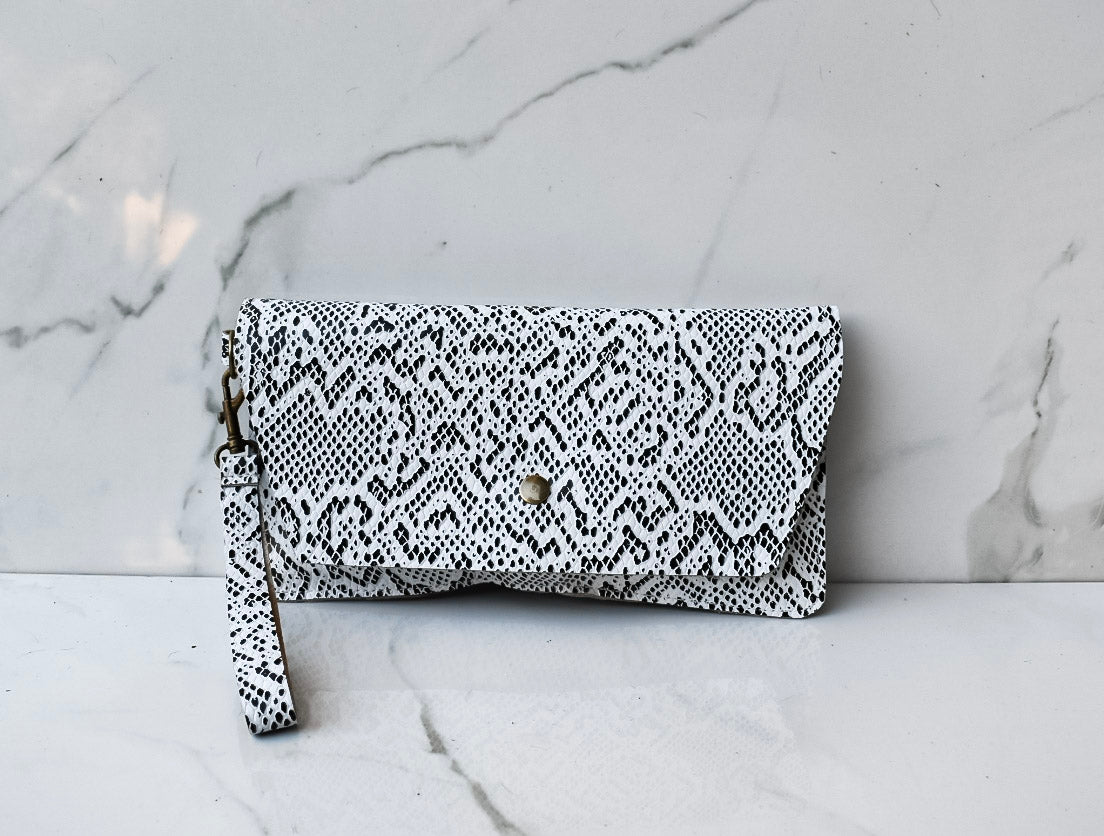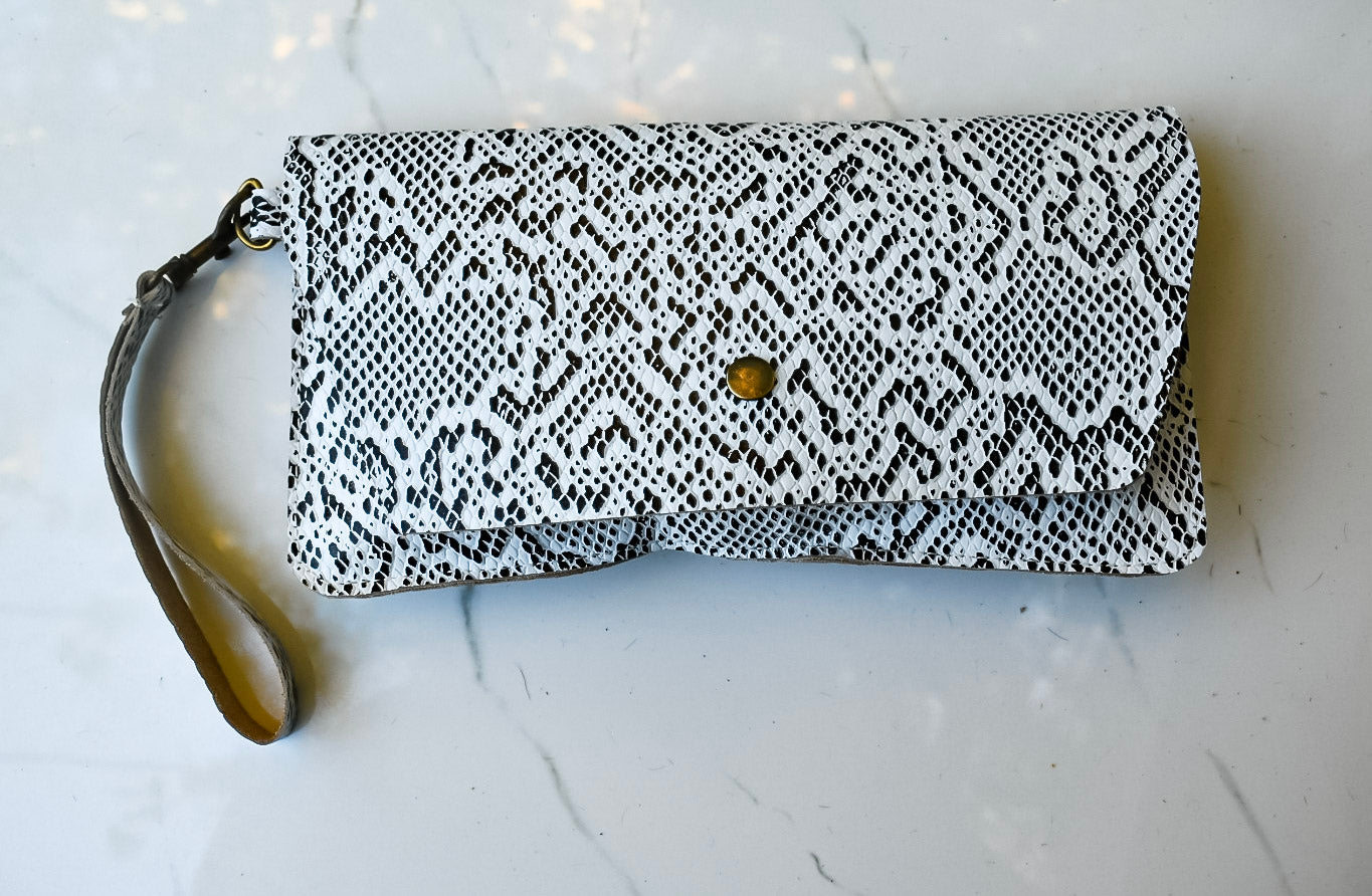 A small statement with big charm. This leather wristlet clutch is the perfect mix of effortless style and everyday practicality.
