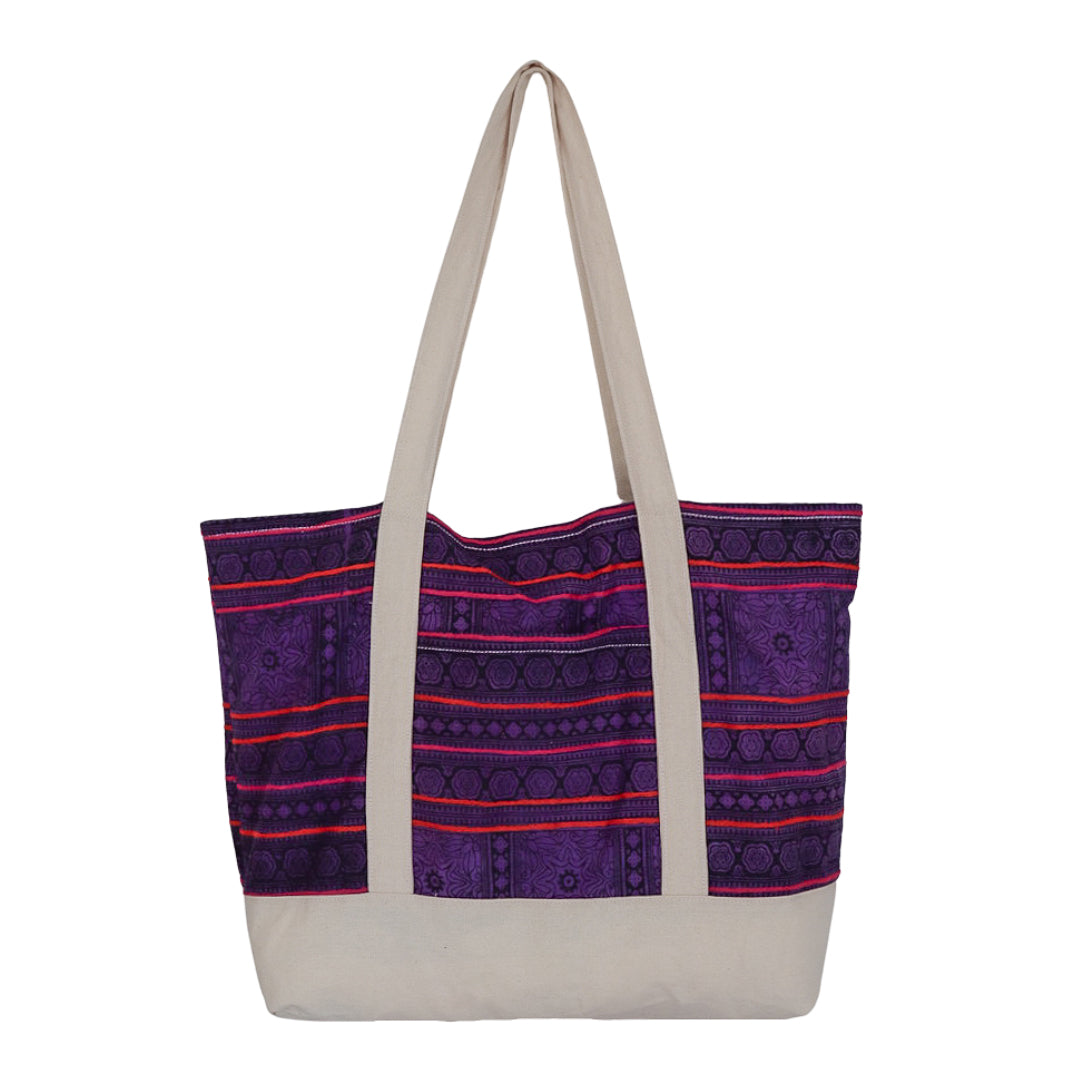 Carry it all with our Beach Weekender Tote. Fit your beach blanket, beauty bag, bikinis and so much more in this large canvas carry-all. Two outside pockets and scavenged vintage fabric.