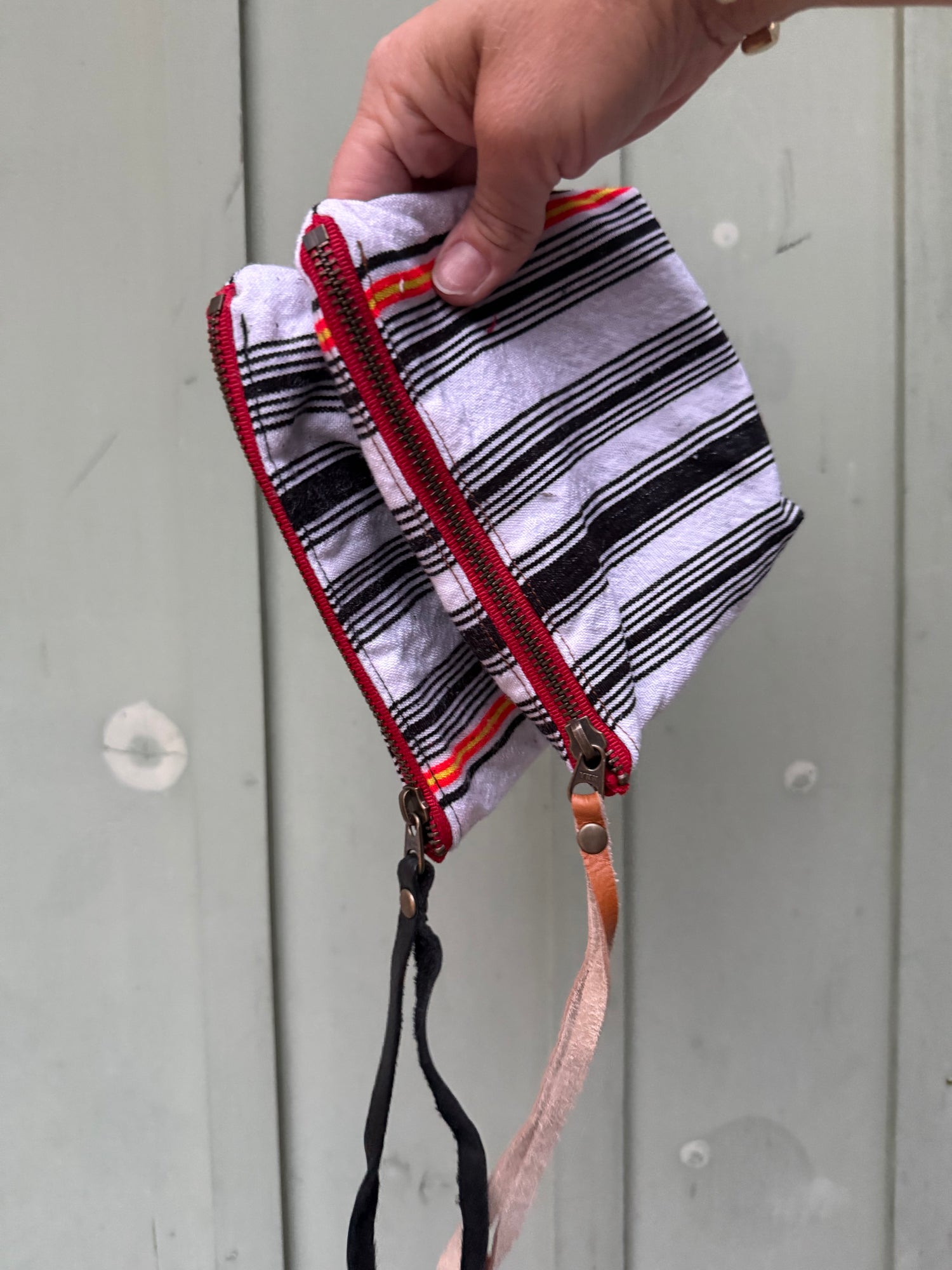 Harlow Moon in White Stripe with Black Leather Wristlet