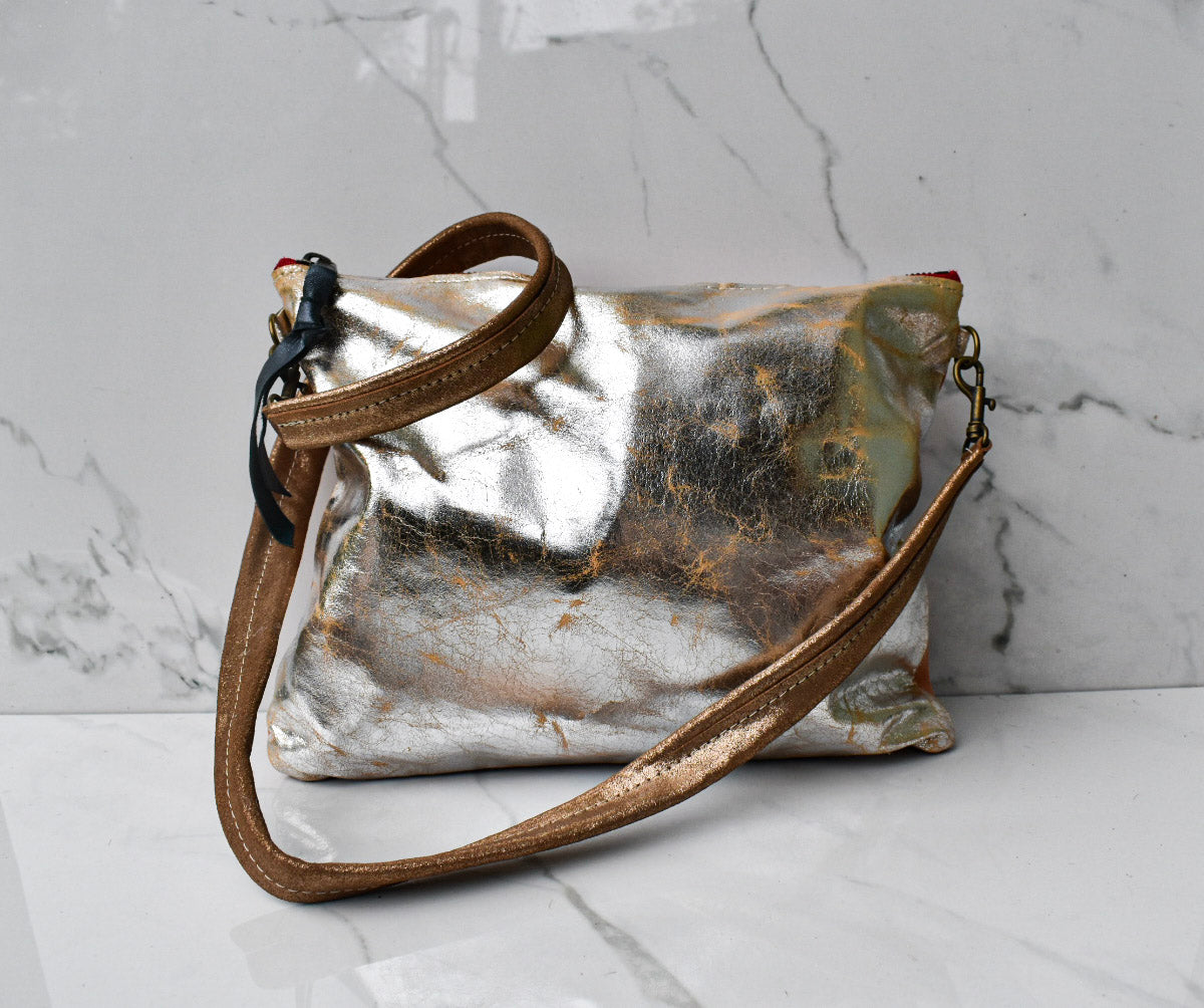 Mini Vivi Navy/Cracked Gold Crossbody