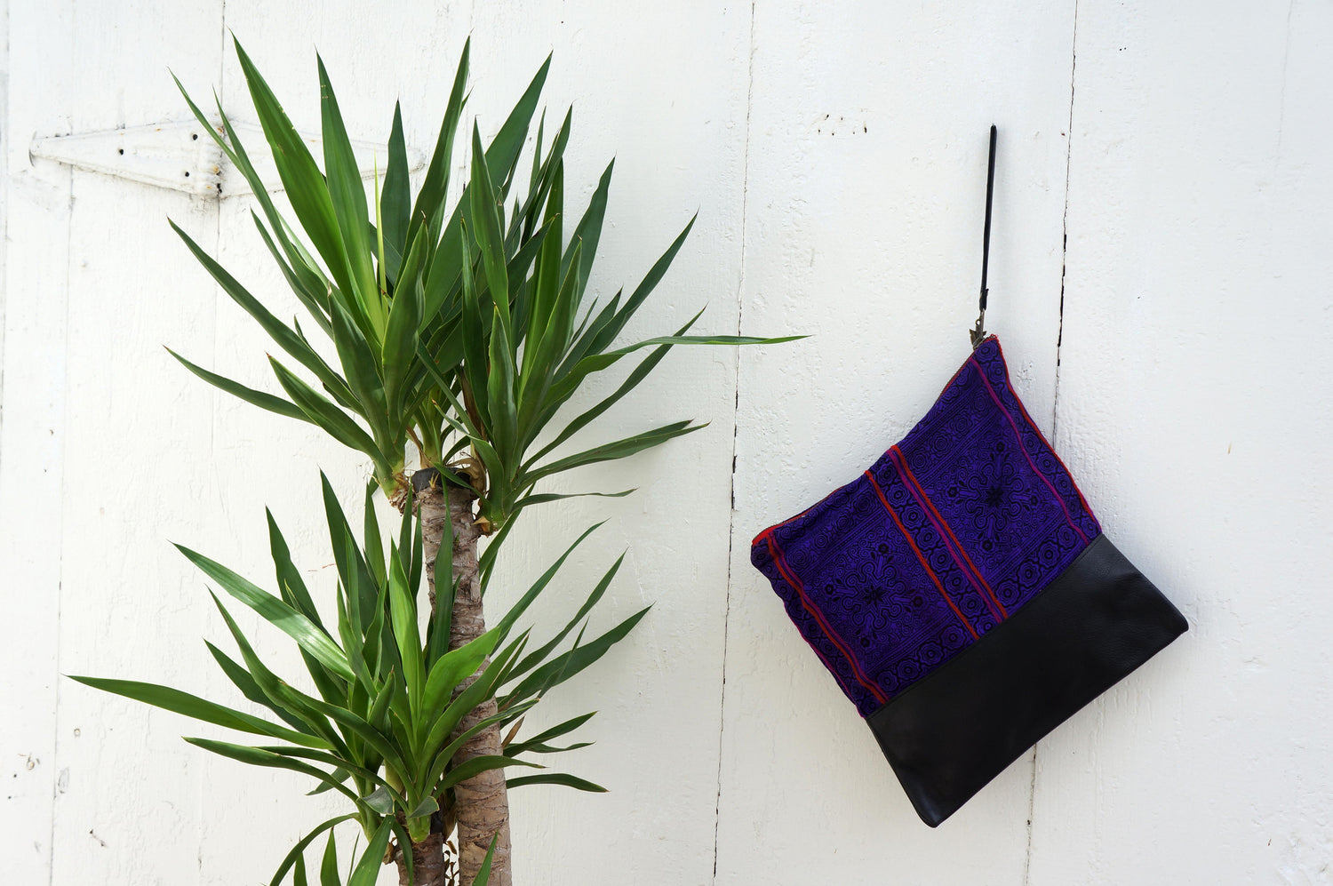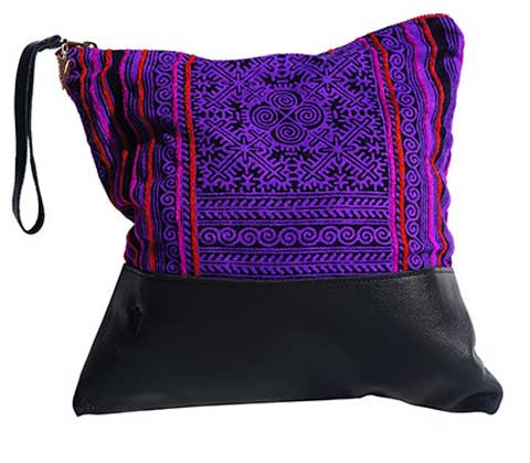 Patong Purple Large Clutch in Black Leather