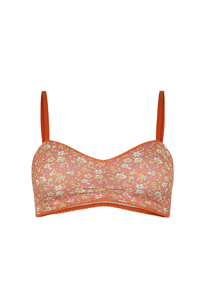 Our Sienna Brallete in Clay is a Spell favourite style reimagined to pair back with our Oceans of Love styles. Featuring adjustable straps and crafted in our usual comfortable and supportive fabrication, our Bralette doubles as swim and is perfect for that vacay by the ocean. Adorned with our signature hand drawn ditsy print in pops of burnt orange and deep clay hues, our bralette pairs back perfectly with the matching Sienna Brief and the Sienna Wrap Skirt.